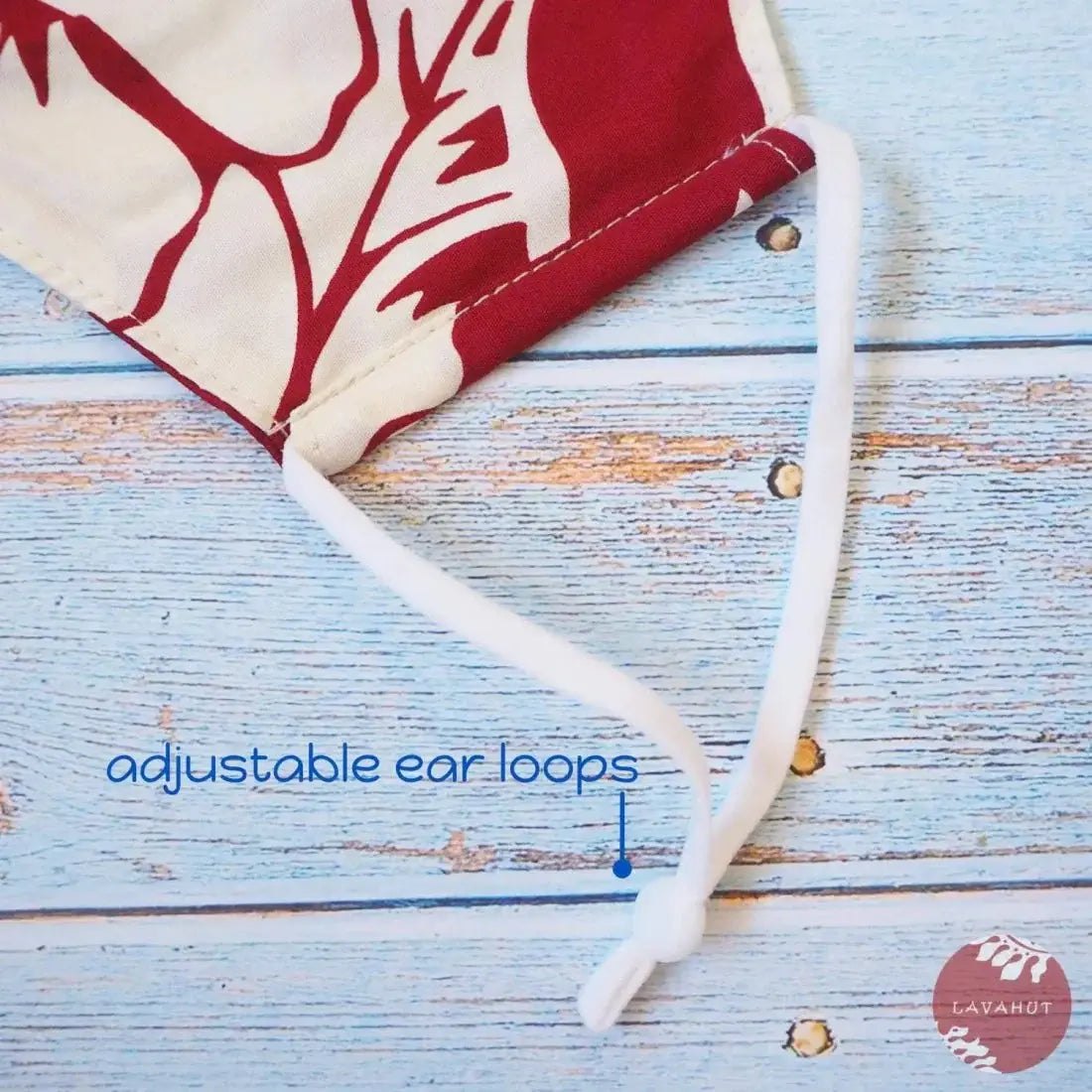 Adjustable Tropical Face Mask • Red Hibiscus Fiesta - Made in Hawaii