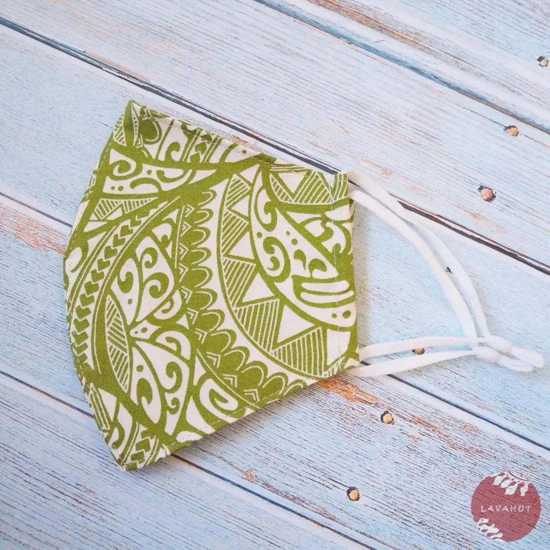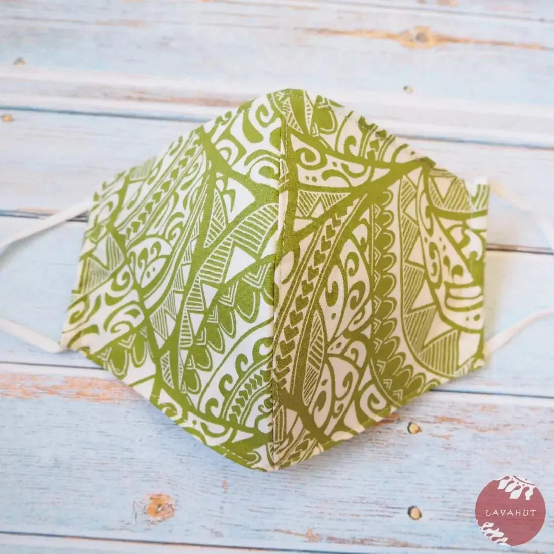 Adjustable Tropical Face Mask • Green Tribal - Made in Hawaii