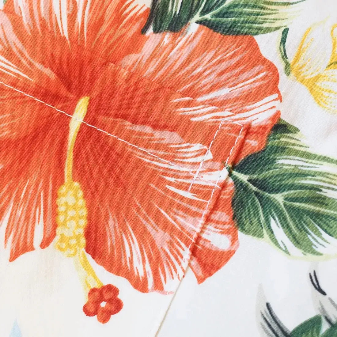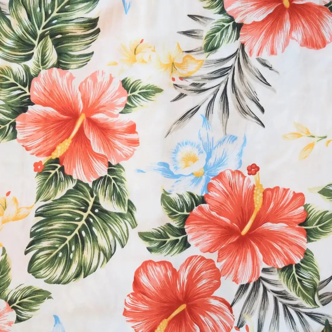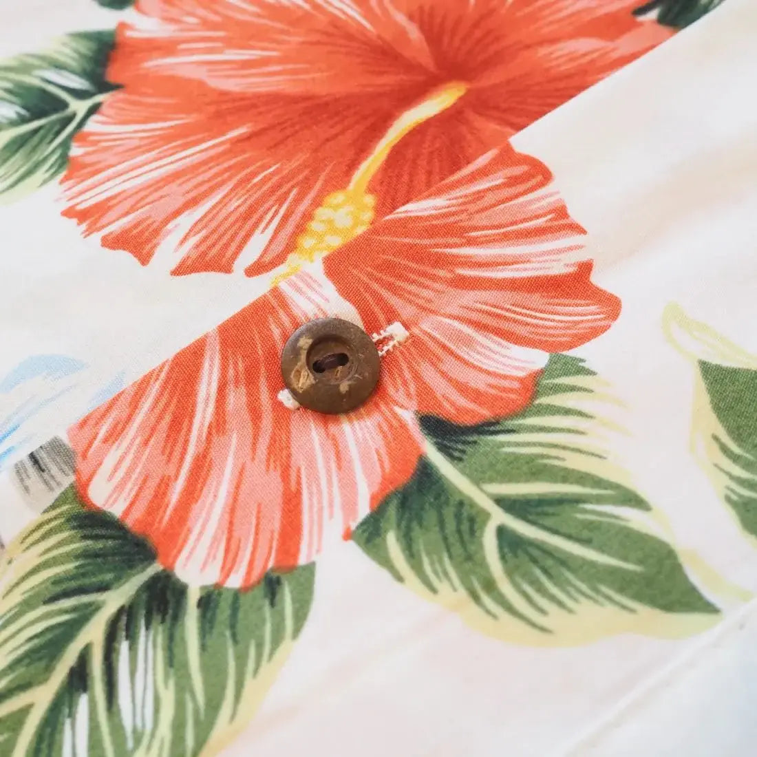 Inspired by the natural beauty of Kaua‘i’s breathtaking north shore, the Ke‘e Hawaiian Cotton Shirt embodies island elegance with its fresh and timeless design. Featuring a vibrant mix of hibiscus flowers, monstera and fern leaves, and delicate white ginger blossoms, this shirt captures the essence of Hawaii’s lush landscapes in a beautifully random print.