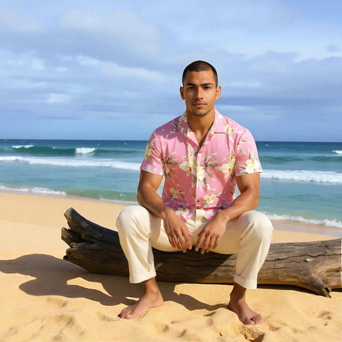A serene island print of orchid blooms on a relaxing made-in-Hawaii shirt. Sewn with real coconut buttons & matching seam pocket.