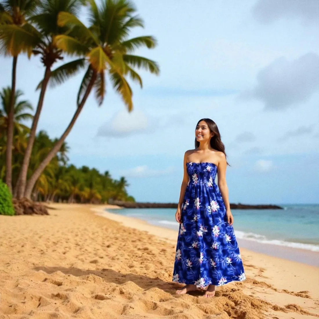 Look sexy in this Hawaiian floral maxi dress. In a classic femme fit with a comfortable elastic smock top. Detailed with soft skinny shoulder straps you can have tied or hidden for a sexy strapless look. If you love purple, then this Hawaiian beauty is for you.