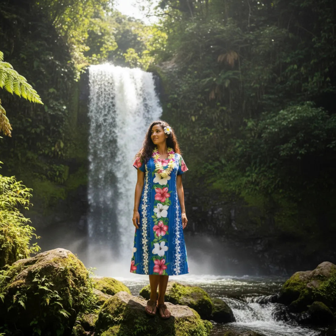 Vintage Aloha Blue Nalani Hawaiian Dress