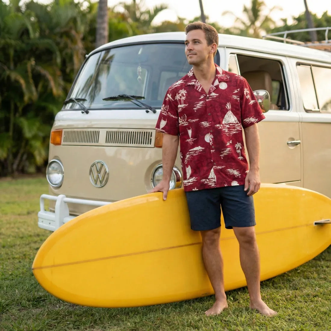 Crafted from buttery-soft 100% rayon poplin and finished with real coconut buttons, each shirt is sewn in Hawai‘i by local seamstresses, blending authentic island craftsmanship with all-day comfort. Whether you're chasing waves or chilling with ʻohana, this shirt brings fiery style and unmistakable aloha wherever you go.