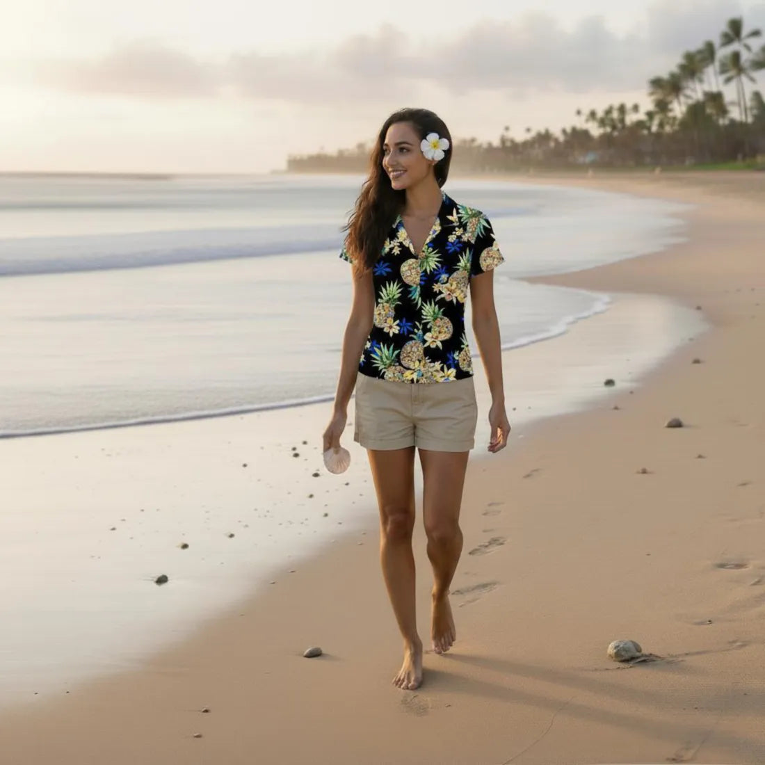 Pineapple Blue Women's Hawaiian Rayon Shirt